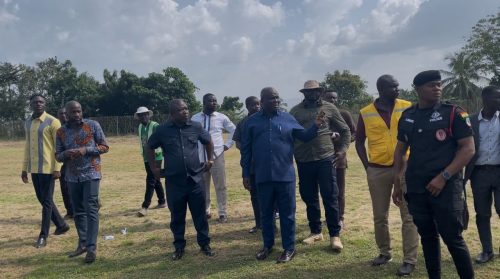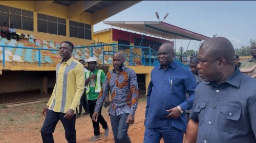 Hon. Opoku expressed satisfaction with the level of preparation at the stadium. After touring the facility including the pitch, seating areas, parking spaces, and designated exhibition zones he commended the regional authorities and the local organizing committee for the work done so far.